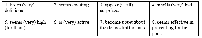 (Hoàn thành các câu sử dụng các động từ liên kết trong ngoặc và các tính từ trong hộp. Bạn có thể thêm nhiều từ hơn nếu cần thiết.)