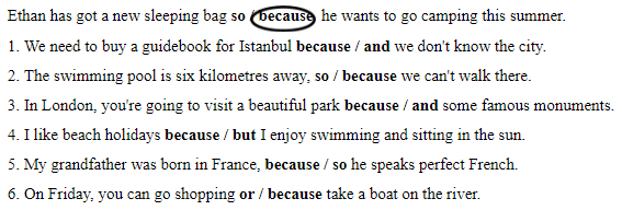 2. Complete the sentences with because and the given phrases.