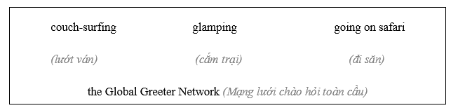 (Viết một trang Câu hỏi thường gặp về một trong những điều này xu hướng du lịch mạo hiểm hoặc chọn của riêng bạn. Nghiên cứu xu hướng và tìm hiểu xem nó liên quan đến điều gì hoặc sử dụng kiến thức của riêng bạn.)