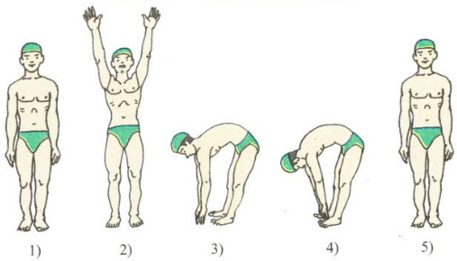 Below are the instructions for warm-up exercises before swimming. Read and match each sentence with one appropriate action.