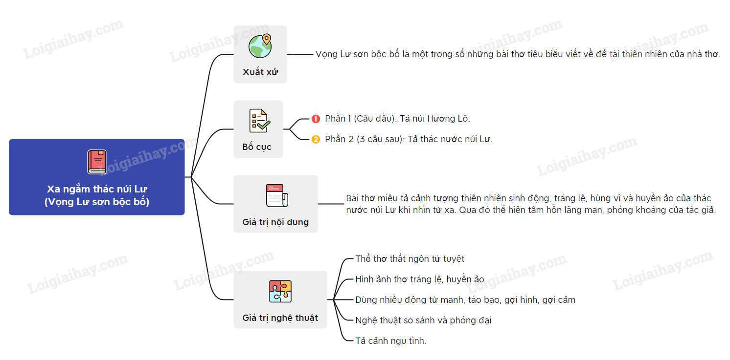 Sơ đồ tư duy văn bản Xa ngắm thác núi Lư: