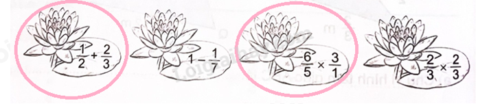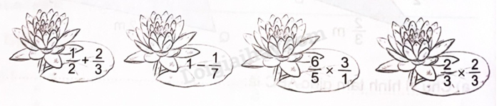 Tô màu vào những cây hoa súng ghi phép tính có kết quả lớn hơn 1.