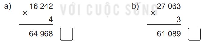Thực hiện phép nhân thừa số thứ hai với từng chữ số của thừa số thứ nhất theo thứ tự từ phải sang trái rồi kiểm tra kết quả để điền Đ hoặc S.
