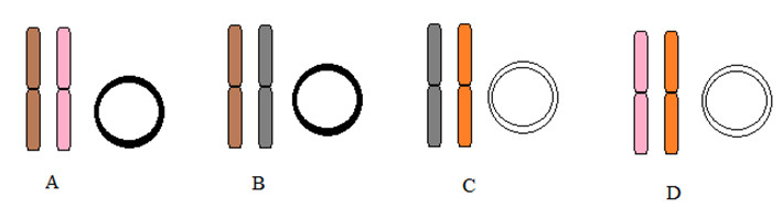 – Ở giới đực: 30% mắt đỏ đuôi dài: 42,5% mắt trắng đuôi ngắn: 20% mắt trắng đuôi dài: 7,5% mắt đỏ đuôi ngắn
