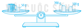 b) Cân nặng của chiếc cốc là 200 g + 100 g – 50 g = 250 g
