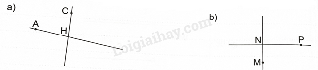 a) Đoạn thẳng AB vuông góc với đoạn thẳng BC.   ………