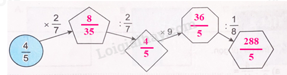 Thực hiện các phép tính theo chiều mũi tên rồi điền phân số thích hợp vào ô trống.
