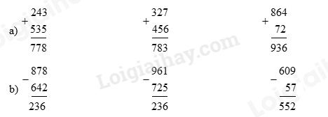 a) 243 + 535                     327 + 456                          864 + 72