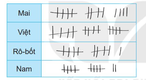Mai: ……. câu; Việt: …….. câu; Rô-bốt: …….. câu; Nam: …….. câu.