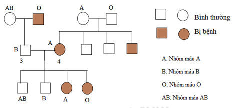 Nếu cá thể 3 và 4 sinh thêm đứa con thứ 5 thì xác suất để đứa con này bị bệnh ankan niệu là bao nhiêu ? Biết rằng bác sĩ xét nghiệm đứa con thứ 5 có nhóm máu B.
