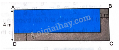 Mảnh đất hình chữ nhật ABCD có chiều rộng 4 m, diện tích $\frac{{91}}{2}$ m2. Trên mảnh đất này, người ta đào một cái ao hình chữ nhật để thả ba ba, phần đất còn lại làm một lối đi rộng 1 m (như hình vẽ). Diện tích cái ao là ….. m2.
