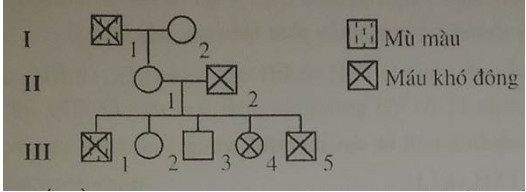 Biết rằng bệnh mù màu và bệnh máu khó đông đều do gen lặn nằm trên vùng không tương đồng của NST X quy định. Hai gen này cách nhau 12cM.