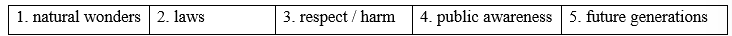 3. When people construct buildings near natural wonders, they have to _______ natural habitats and mustn’t _______ nature.