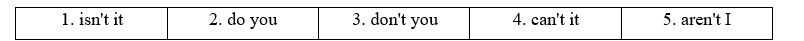 • Use tag questions like… don’t you?,… isn’t it?,… are you?, etc. to elicit agreement from the other person. Remember, we use affirmative tags after negative verbs, and vice versa.