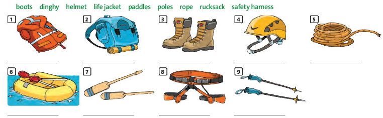 1. Label pictures 1-9 with the words below.