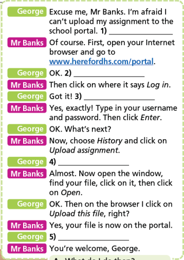 George: Excuse me, Mr Banks. I’m afraid I can’t upload my assignment to the school
