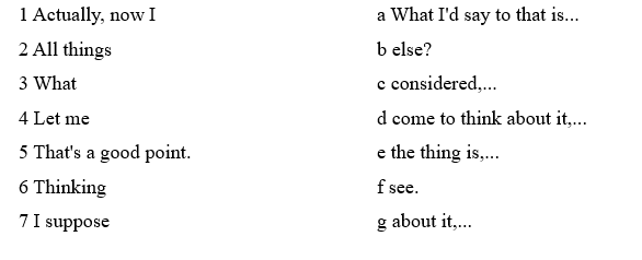 2. Read the Speaking Strategy. Then match 1-7 with a-g to make phrases for gaining time.