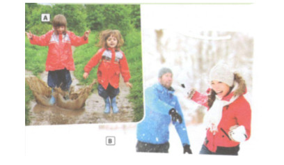Both photos show two people having (5)_________________ in bad weather. In the first photo, the girls are (6)_________________ in a puddle. In the second photo, the man is (7)_________________ a snowball at the woman. You can see trees in both photos. In both photos, the people are (8)_________________ warm coats. The obvious difference is that they are (9)_________________ in the first photo, but adults in the second. (10)_________________ by their expressions, I’d say they are (11)_________________ themselves.