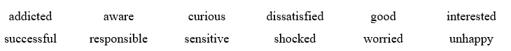 (Bạn cần học các kết hợp tính từ + giới từ này vì chúng không tuân theo bất kỳ quy tắc nào. Một cuốn từ điển tốt sẽ cho bạn biết nên dùng giới từ nào với tính từ nào.)