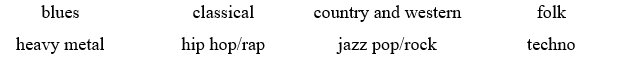 6 SPEAKING Work in pairs. Discuss what kinds of musical genres you enjoy listening to.