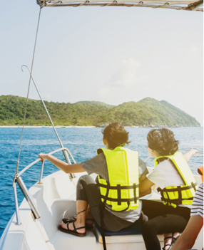 They’re on a boat. (Họ đang ở trên một chiếc thuyền.)