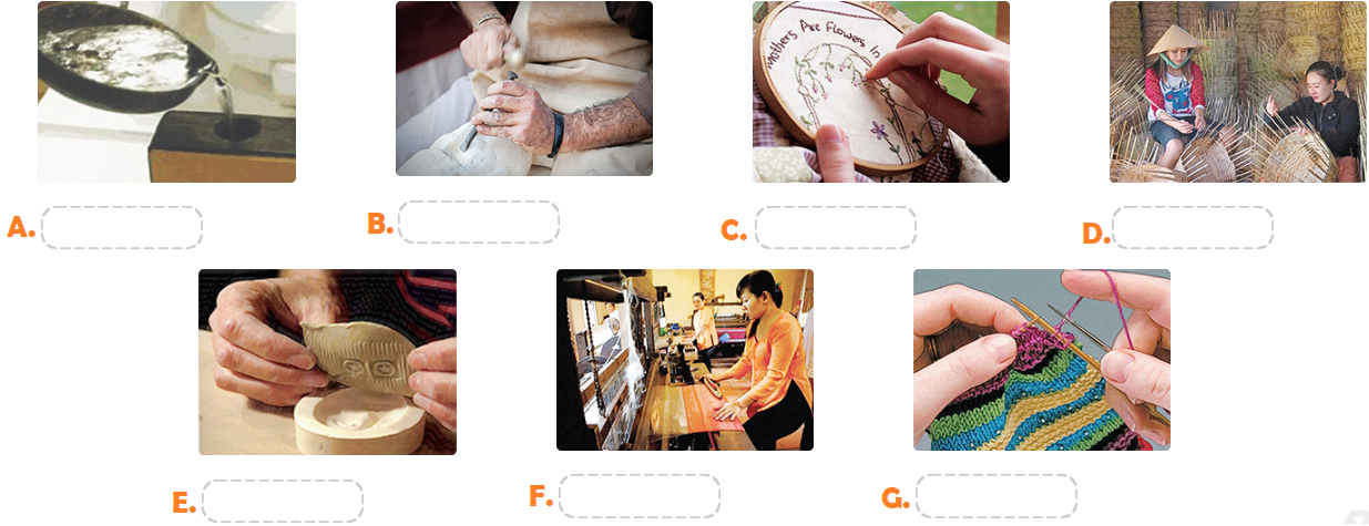 (đan, dệt – rổ, thảm, lụa, vải)