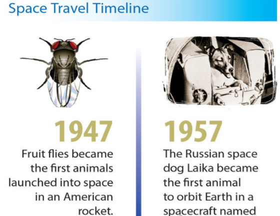 1. Friut flies had been sent into space before Laika the dog made her space journey.