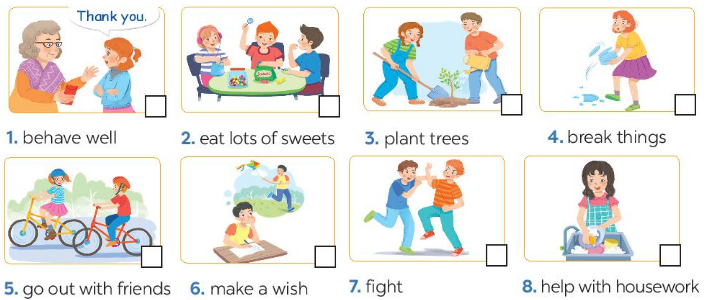 2. Tick (✓) the activities children should do at Tet and cross (x) the one they shouldn’t.