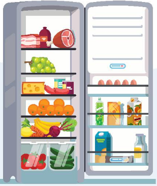 5. Workin pairs. Look at the fridge. Make sentences with the words / phrases provided, using some or any.