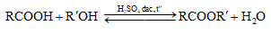 RCOOH + R’OH \(\overset {{H_2}S{O_4}đặc,{t^o}} \leftrightarrows \) RCOOR’ + H2O