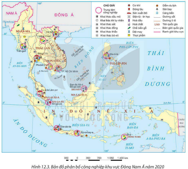 Khai thác thông tin mục 2 và hình 12.3, hãy trình bày và giải thích sự phát triển của các ngành công nghiệp khu vực Đông Nam Á.