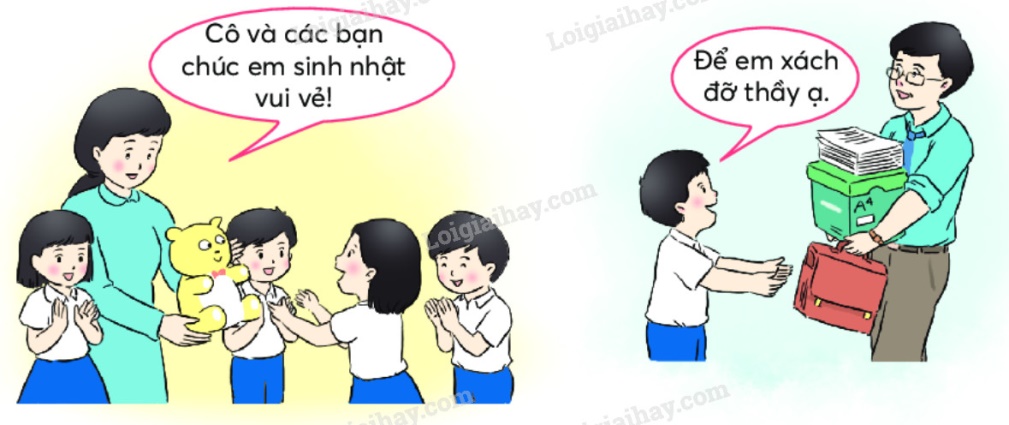– Tranh 2: Học sinh đề nghị xách đồ giúp thầy giáo.