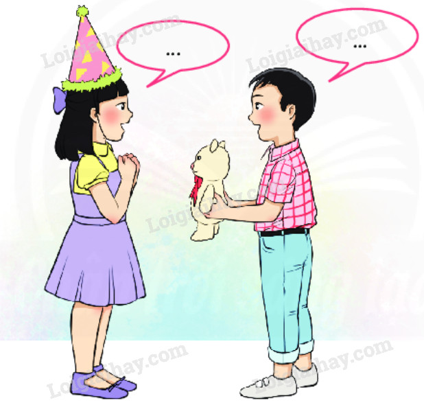 – Bạn nam: Chúc mừng sinh nhật bạn! Mình có món quà nhỏ tặng bạn!