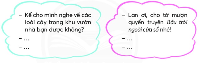 – Lan ơi, cho tớ mượn quyển truyện Bầu trời ngoài cửa sổ nhé!