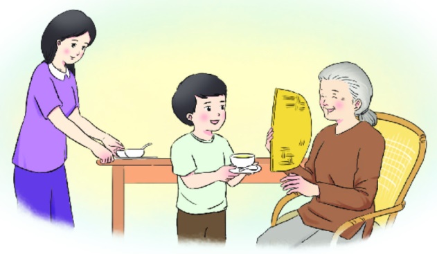 – Cháu mời bà, con mời mẹ thưởng thức món chè sen ạ!