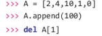 Sau lệnh “>>> del A[1]”, danh sách A hiển thị [2, 10, 1, 0, 100].