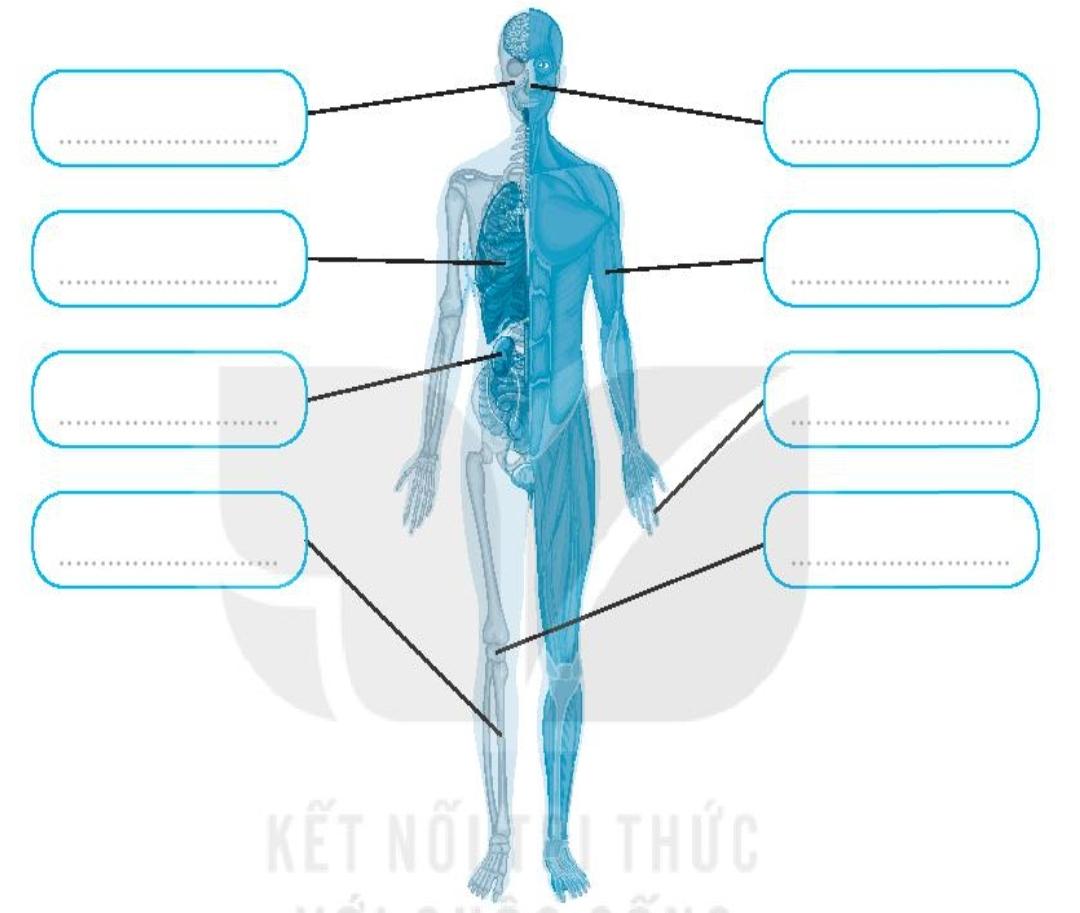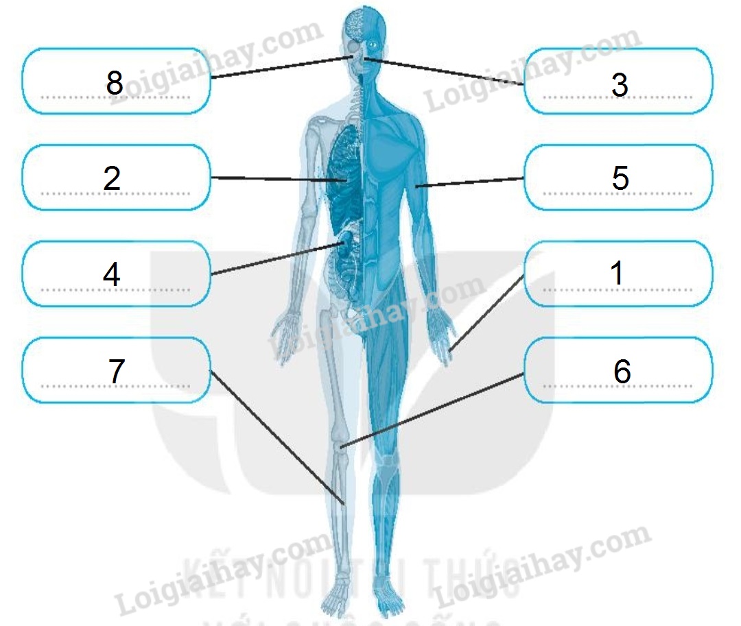 Viết các số từ 1 đến 8 vào các ô trống ở hình sau cho phù hợp. Viết vào chỗ (…) tên các việc làm để chăm sóc, bảo vệ các cơ quan trong bảng sau: