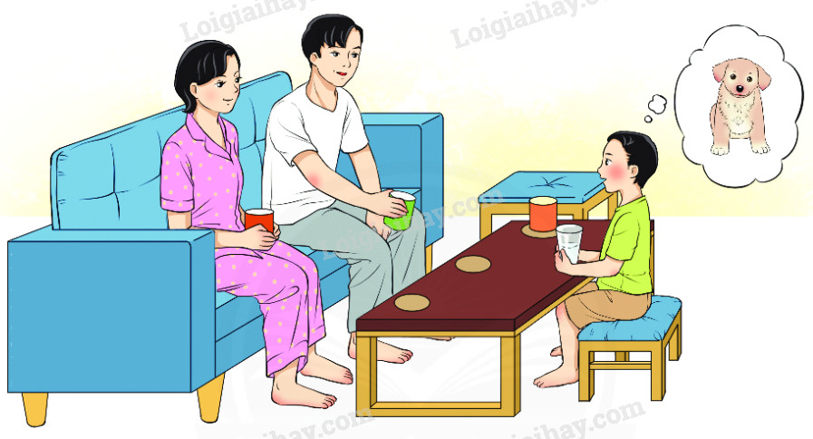 Em: Bố mẹ ơi, bố mẹ cho phép con nuôi cún con nhé!