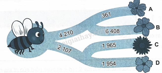 b) Nếu con ong bay theo đường ghi các số lẻ thì con ong bay đến bông hoa C