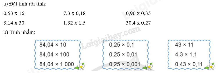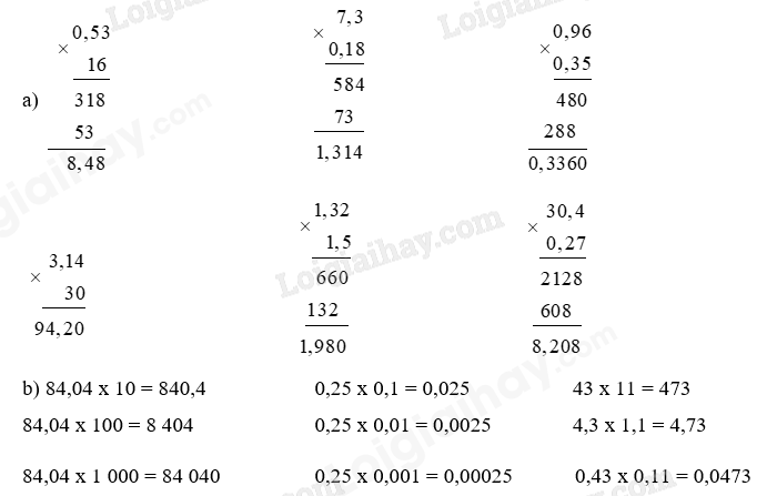 a) Muốn nhân một số thập phân với một số thập phân, ta làm như sau:
