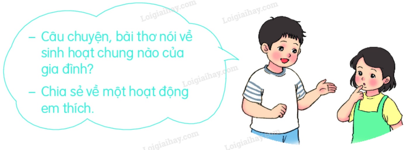 Câu 1: Tìm đọc một bài thơ, câu chuyện, kể về sinh hoạt chung của gia đình (nấu ăn, thăm họ hàng, đi du lịch,…). Khi đọc, chú ý những điều sau: