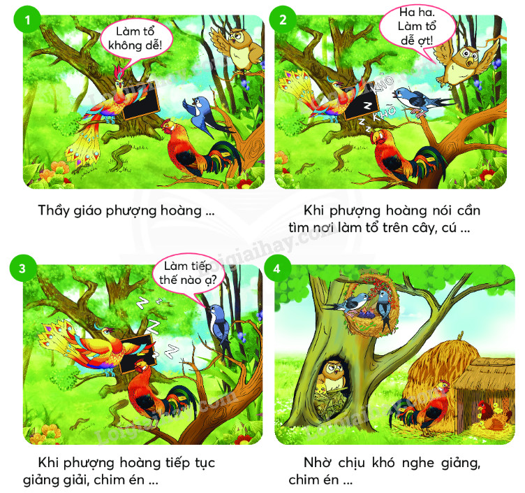 1. Phượng hoàng mở lớp học dạy các loài chim về cách làm tổ. Nó nói: