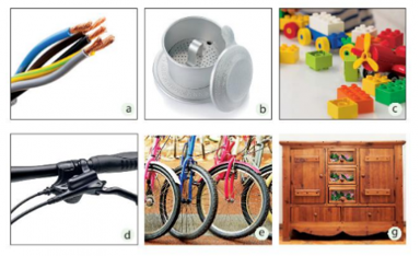 Chiếc thìa, nồi, chìa khóa, muôi nhôm được làm từ kim loại. Rổ, chai, ốp điện thoại được làm từ nhựa (chất dẻo). Gấu bông được làm từ vải.