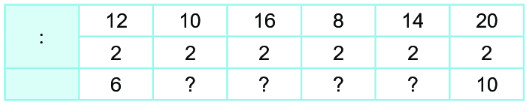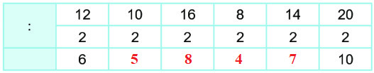 16 : 2 = 8                 20 : 2 = 10                    2 × 2 = 4