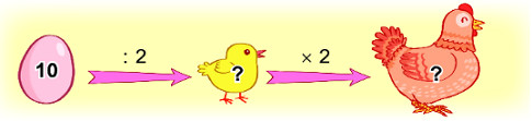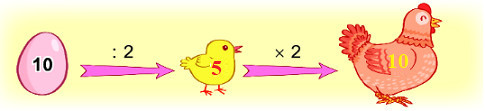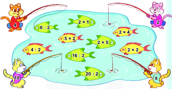 4 : 2 = 2                   5 × 2 = 10                     2 × 5 = 10