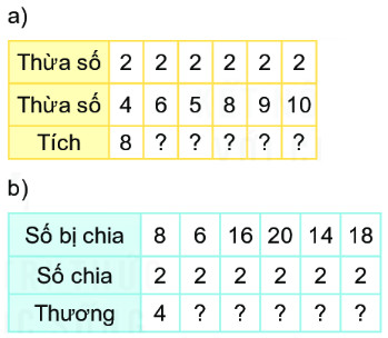 Tính nhẩm kết quả các phép nhân, phép chia dựa vào bảng nhân 2, bảng chia 2 đã học.