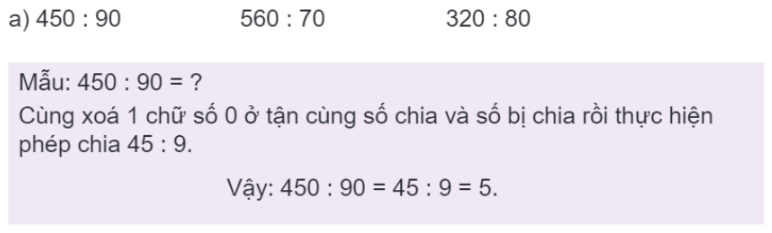 Quan sát ví dụ mẫu rồi thực hiện tính kết quả các phép chia.