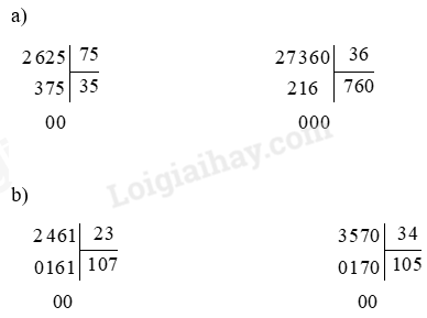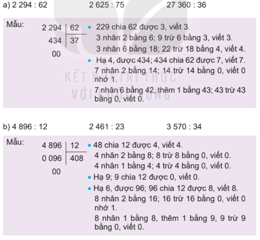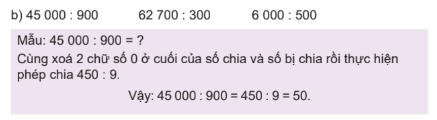Quan sát ví dụ mẫu rồi thực hiện tính kết quả các phép chia.