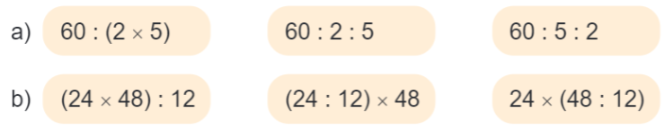 Vậy 60 : (2 x 5) = 60 : 2 : 5 = 60 : 5 : 2