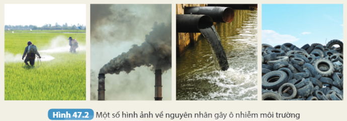 1. Đọc thông tin và quan sát Hình 47.2, chỉ ra một số nguyên nhân gây ô nhiễm môi trường.